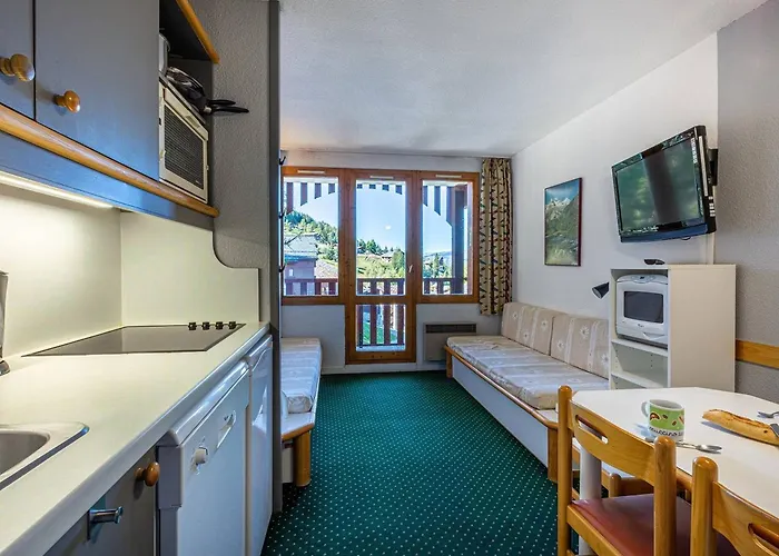 L'appartement Charmant 2 pièces, pour 5 pers., La Plagne, avec balcon et cuisine équipée - FR-1-353-7 est équipé d'une cuisine complète équipée d'un four et d'un lave-vaisselle. L'arrêt de bus Les-Coches-Office-du-Tourisme se trouve non loin de la résidence, tandis que la Vanoise Express 2 se trouve à 750 mètres.